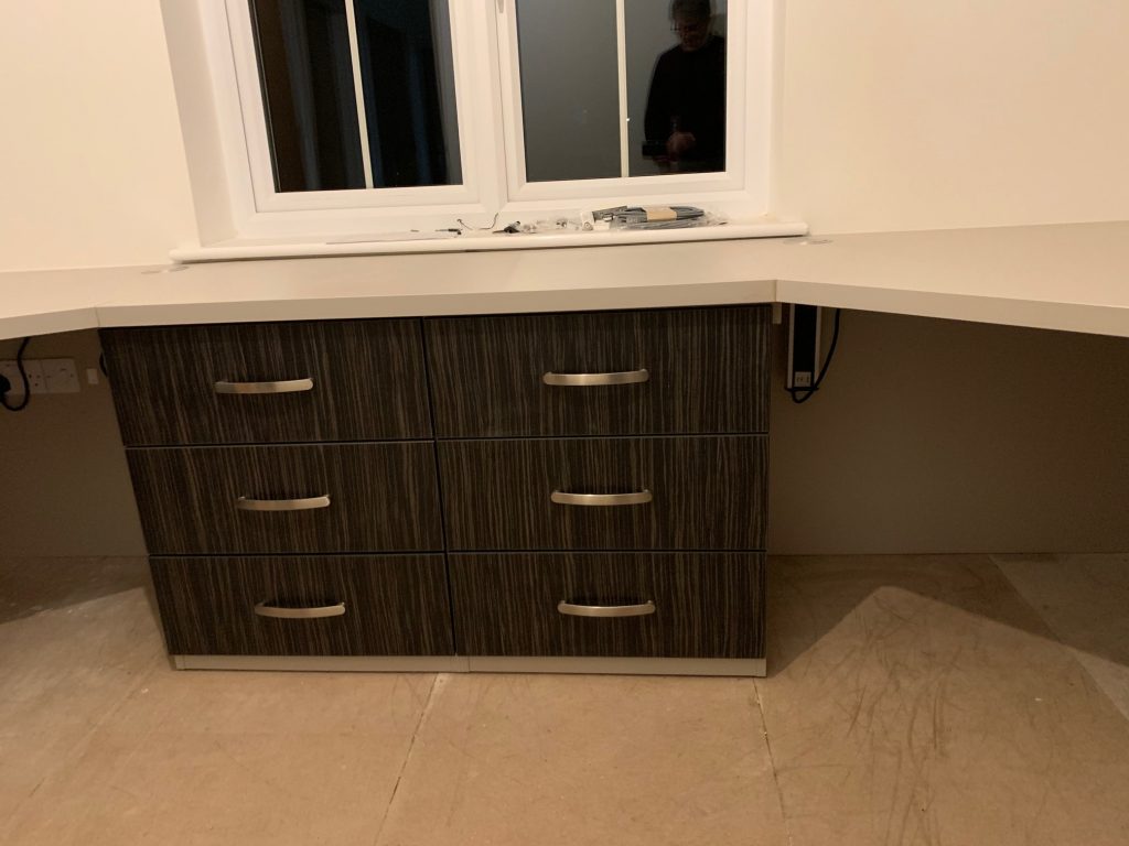 Made from Eggers Cashmere U702 with matching square edged worktops.